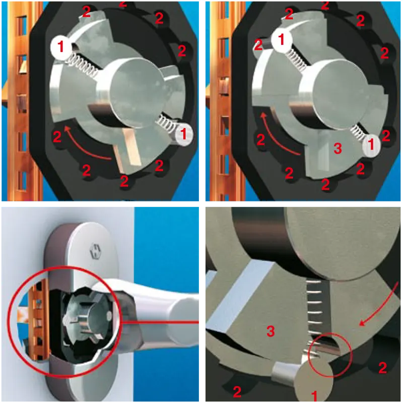 - Характерний звук: При повороті ручки ви чуєте серію клацань. Це звукове підтвердження того, що механізм Secustik працює належним чином, і кожен раз блокується в певній позиції.